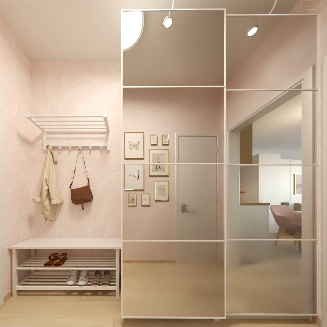 Predsieň s ružovou tapetou