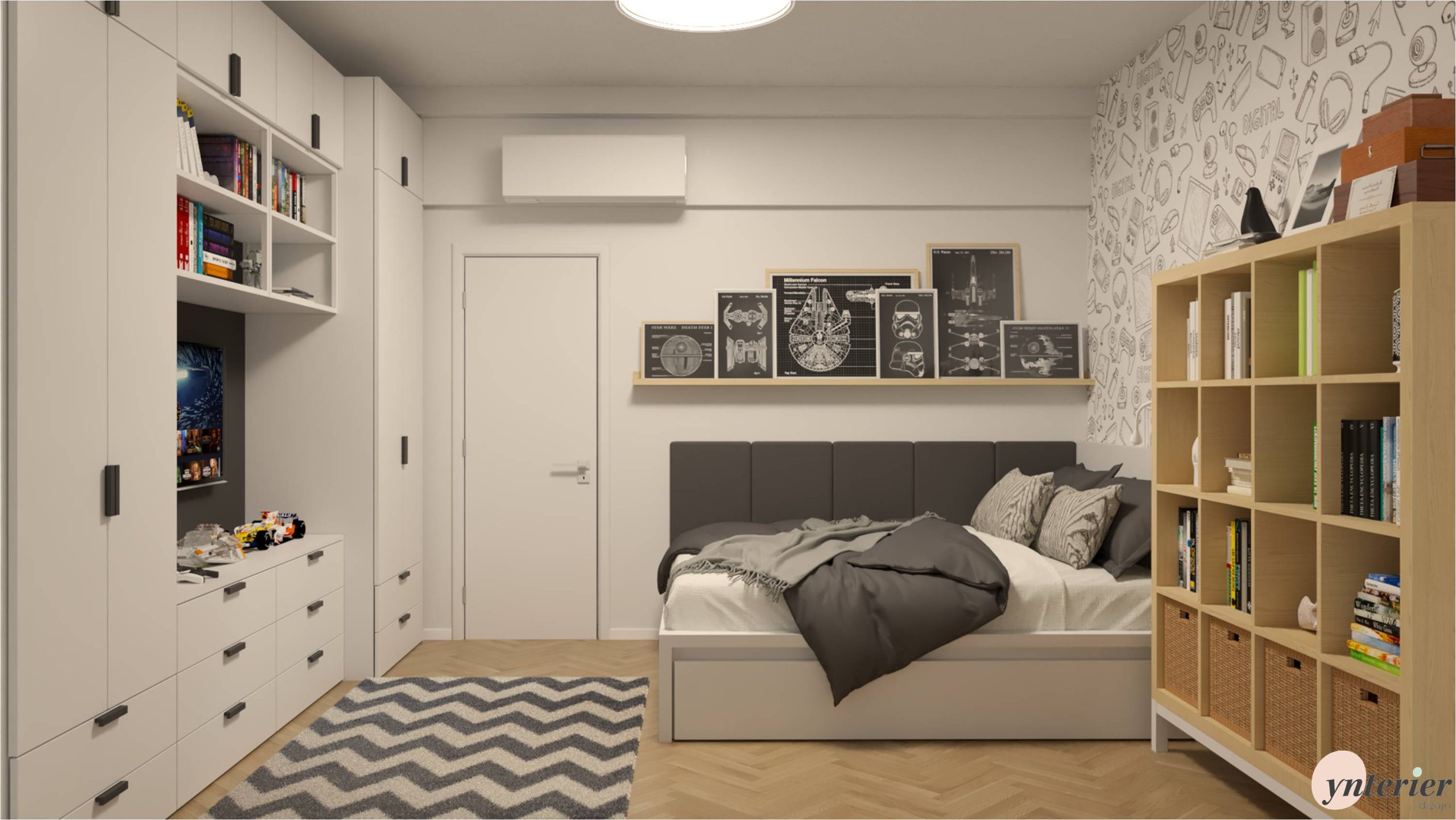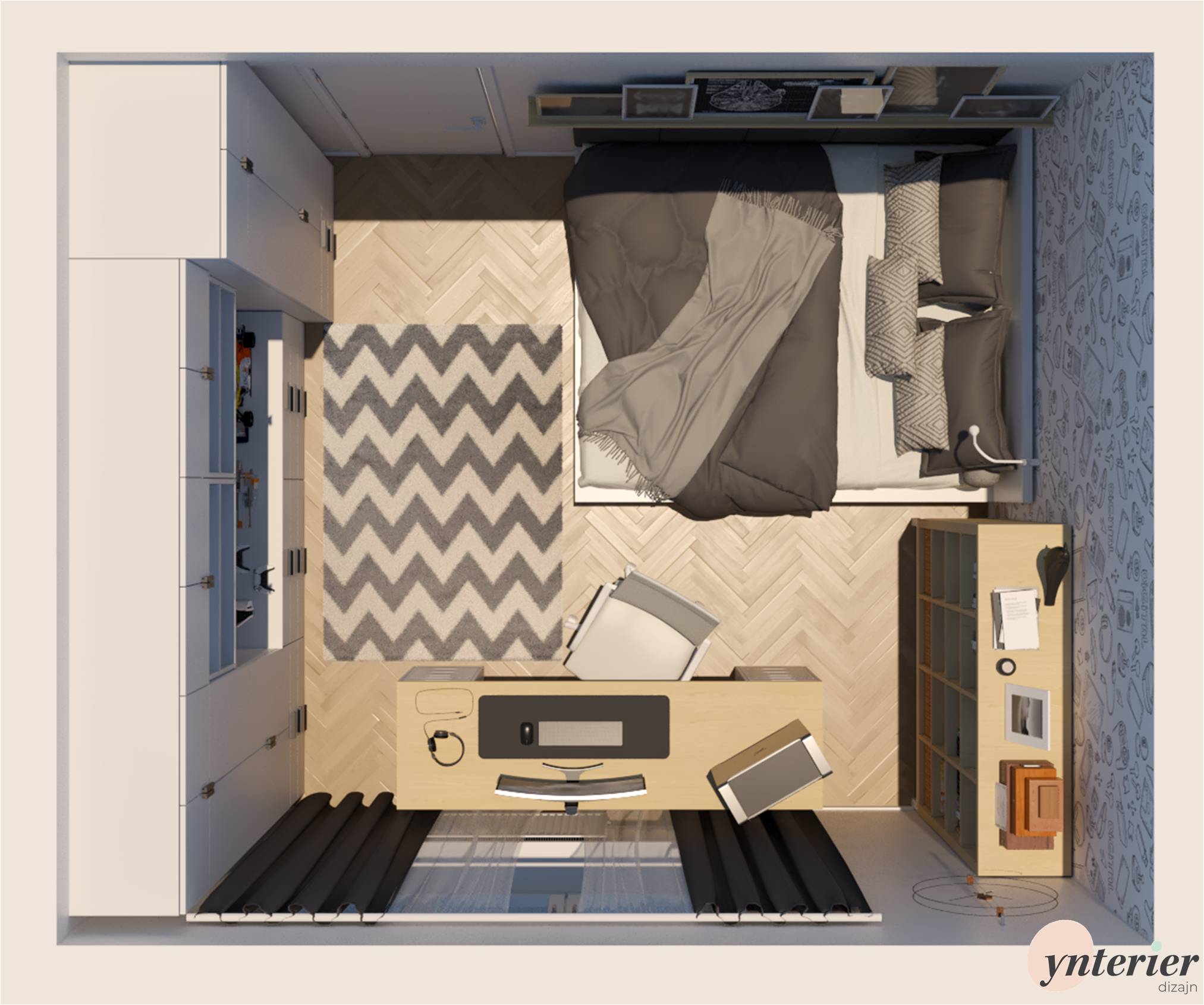 Dostatok úložných riešení je kľúčový pre modernú izbu pre chlapca. Police KALLAX a zásuvkové jednotky pomáhajú udržať poriadok a zároveň ponúkajú estetické riešenie.