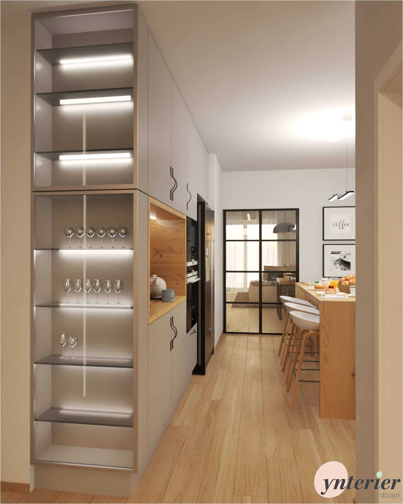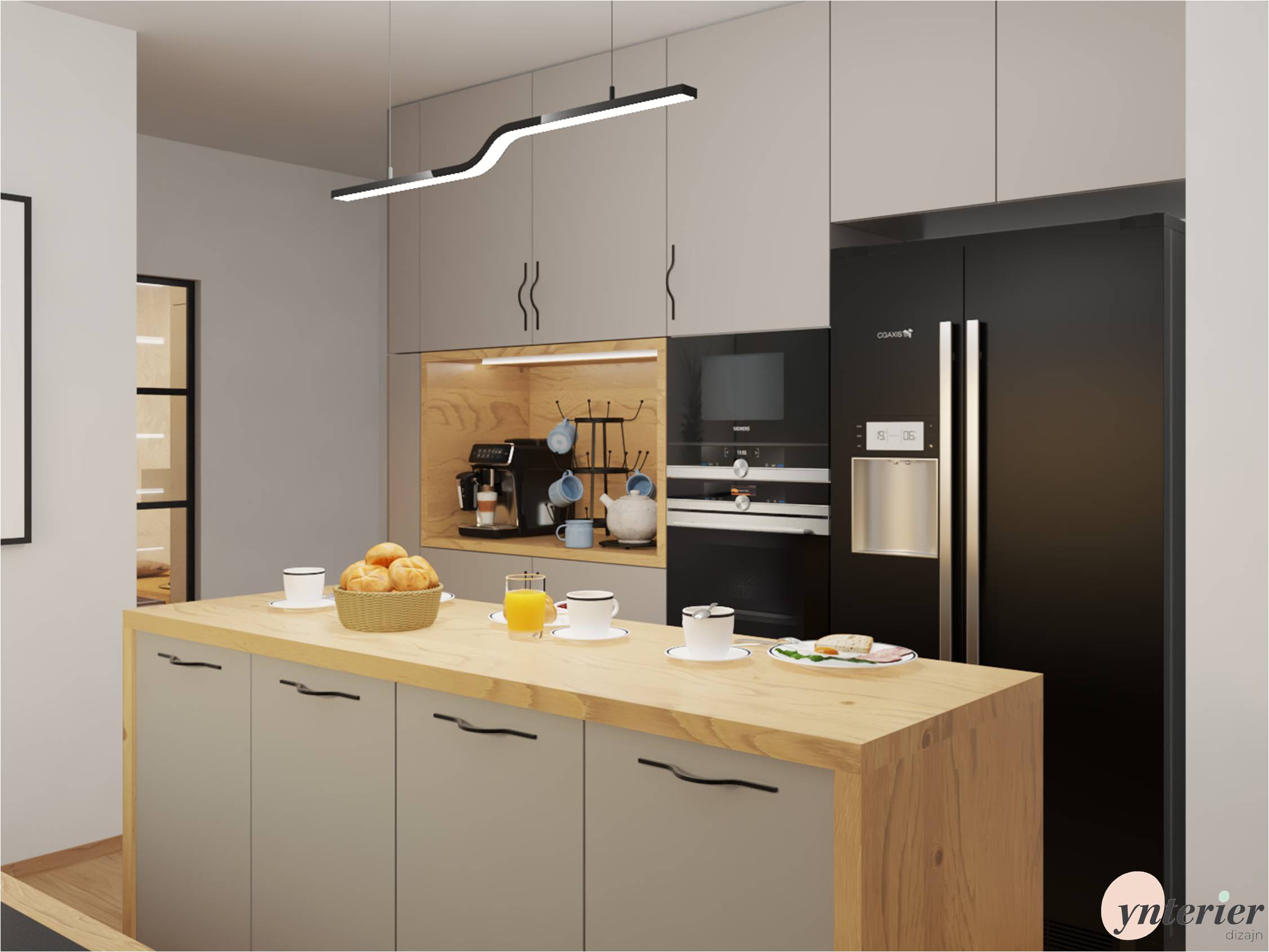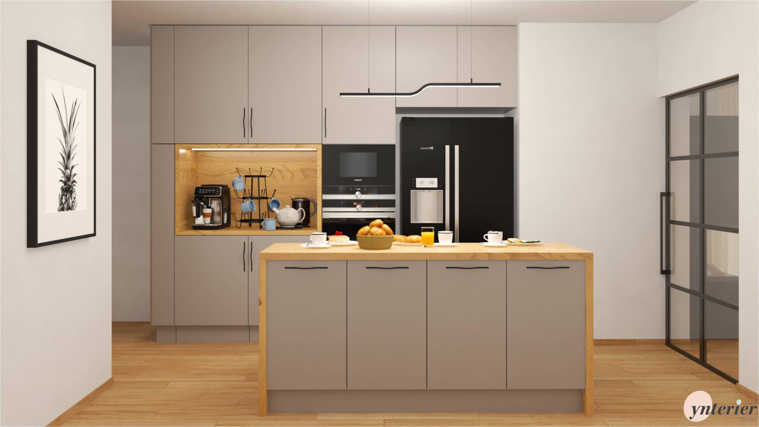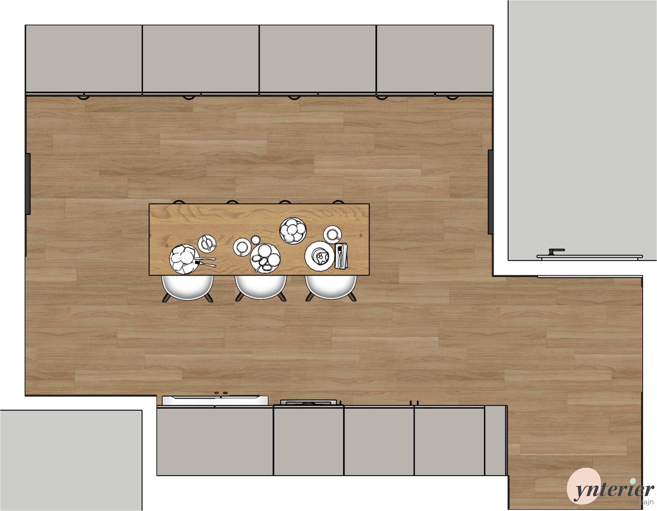 Inšpirujte sa našim návrhom kuchyne v rodinnom dome. Základom sú sivé skrinky, ktoré pekne dopĺňa dubové drevo. Výrazným prvkom sú vzorované kachličky, ktoré zaujmú na prvý pohľad .