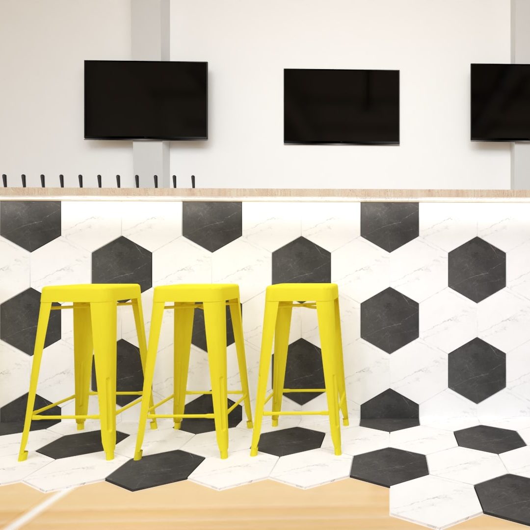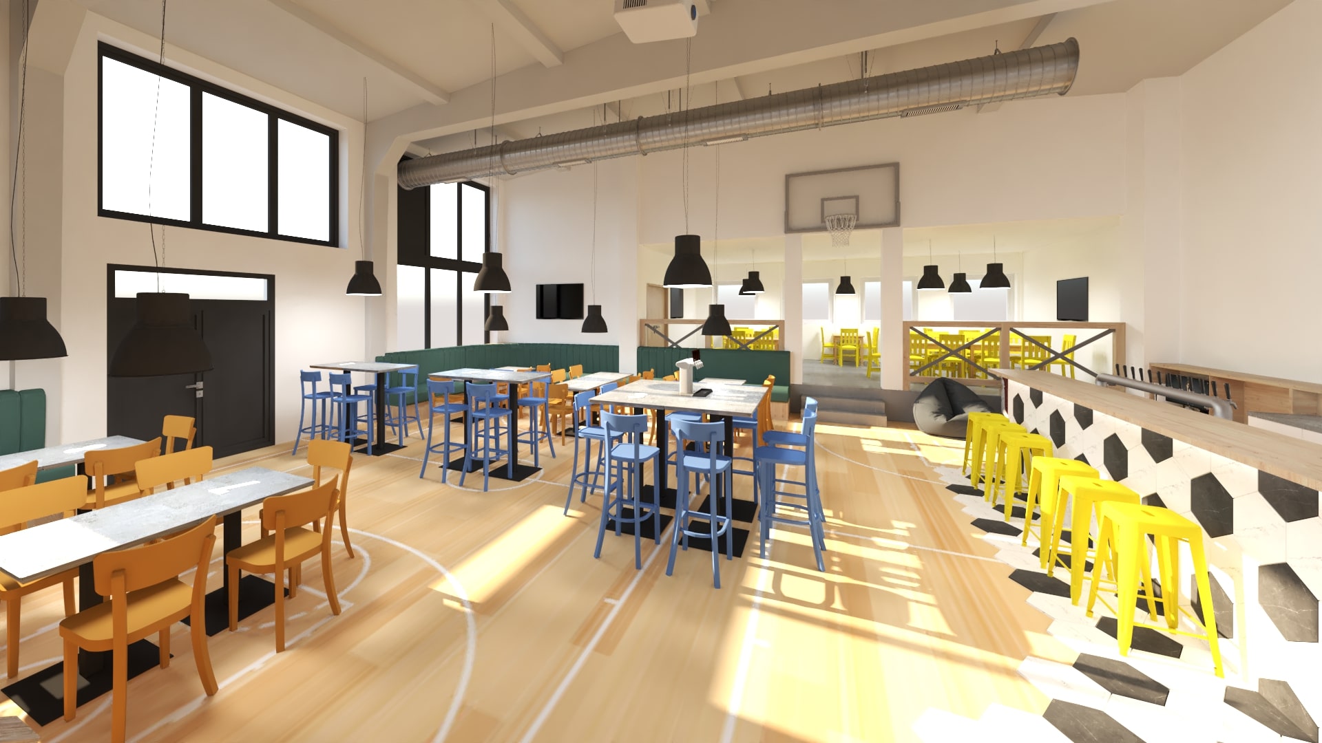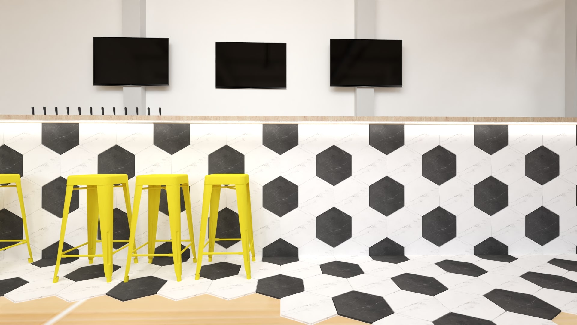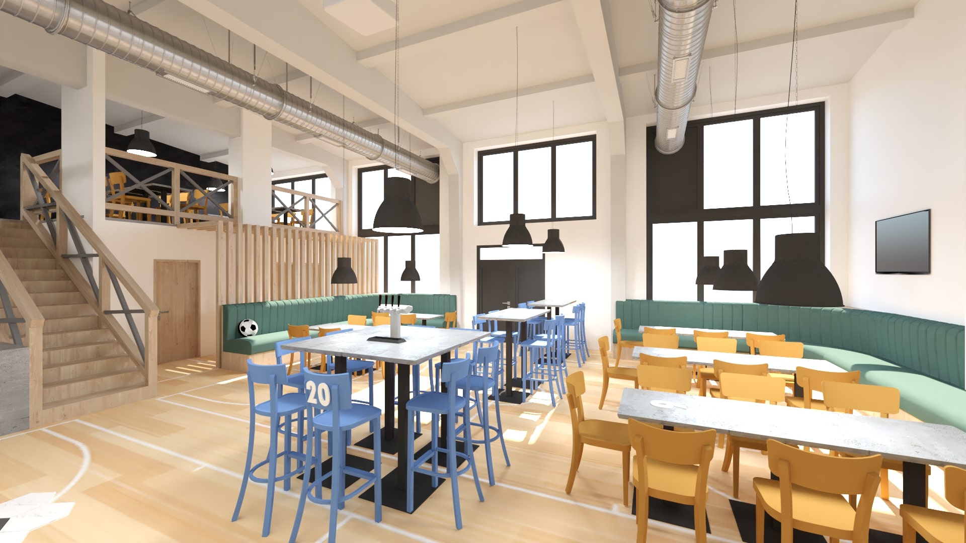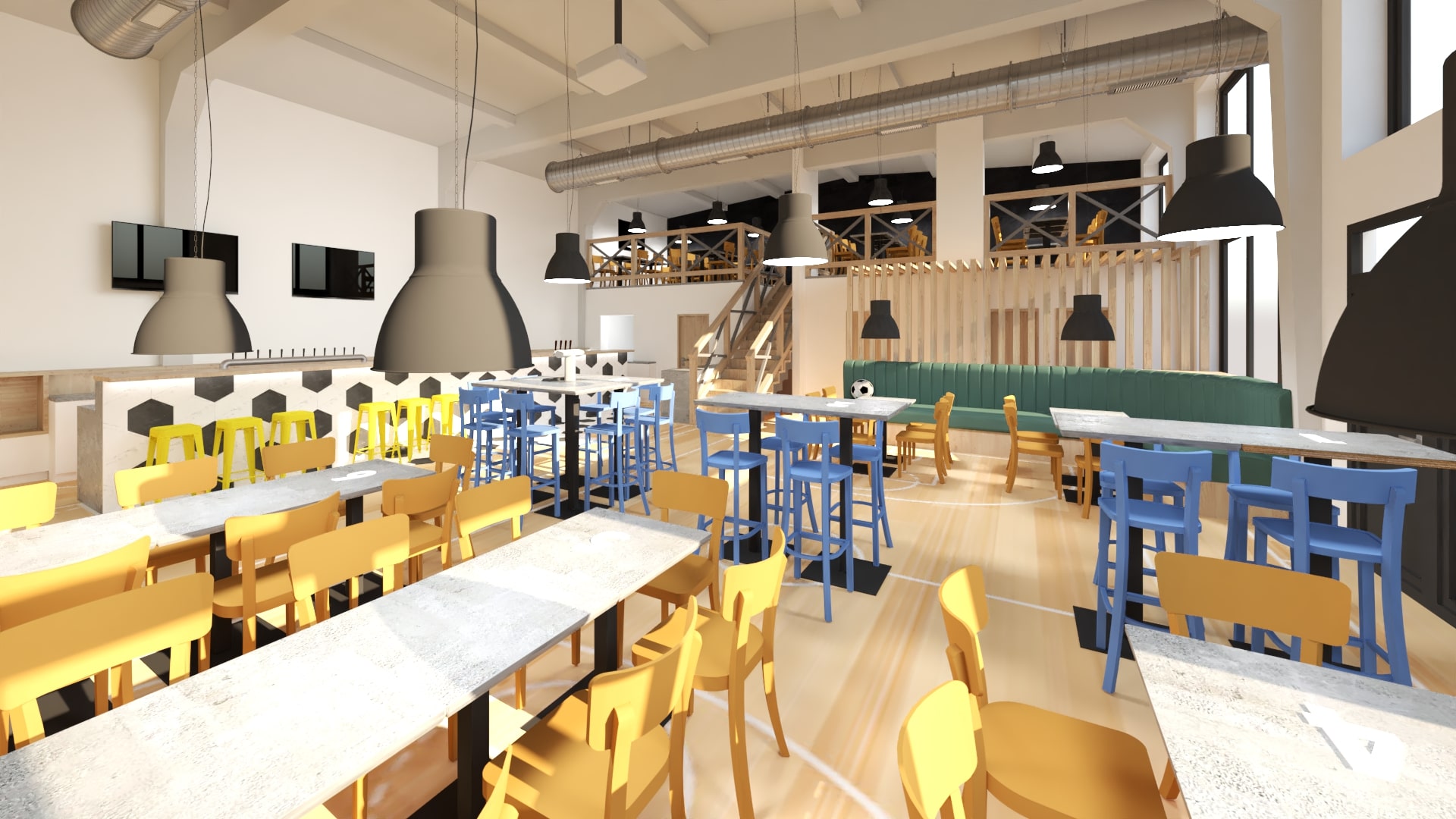 Architektonicky zaujímavý priestor pivárne potreboval nový dizajn. Témou sa stal šport a sledovanie športových prenosov. Bar je inšpirovaný vzorom futbalovej lopty, ktorý postupne prechádza do podlahy podobnej basketbalovej palubovke š čiarami. Stoličky sú farebné a majú na sebe čísla ako hráči na ihrisku.