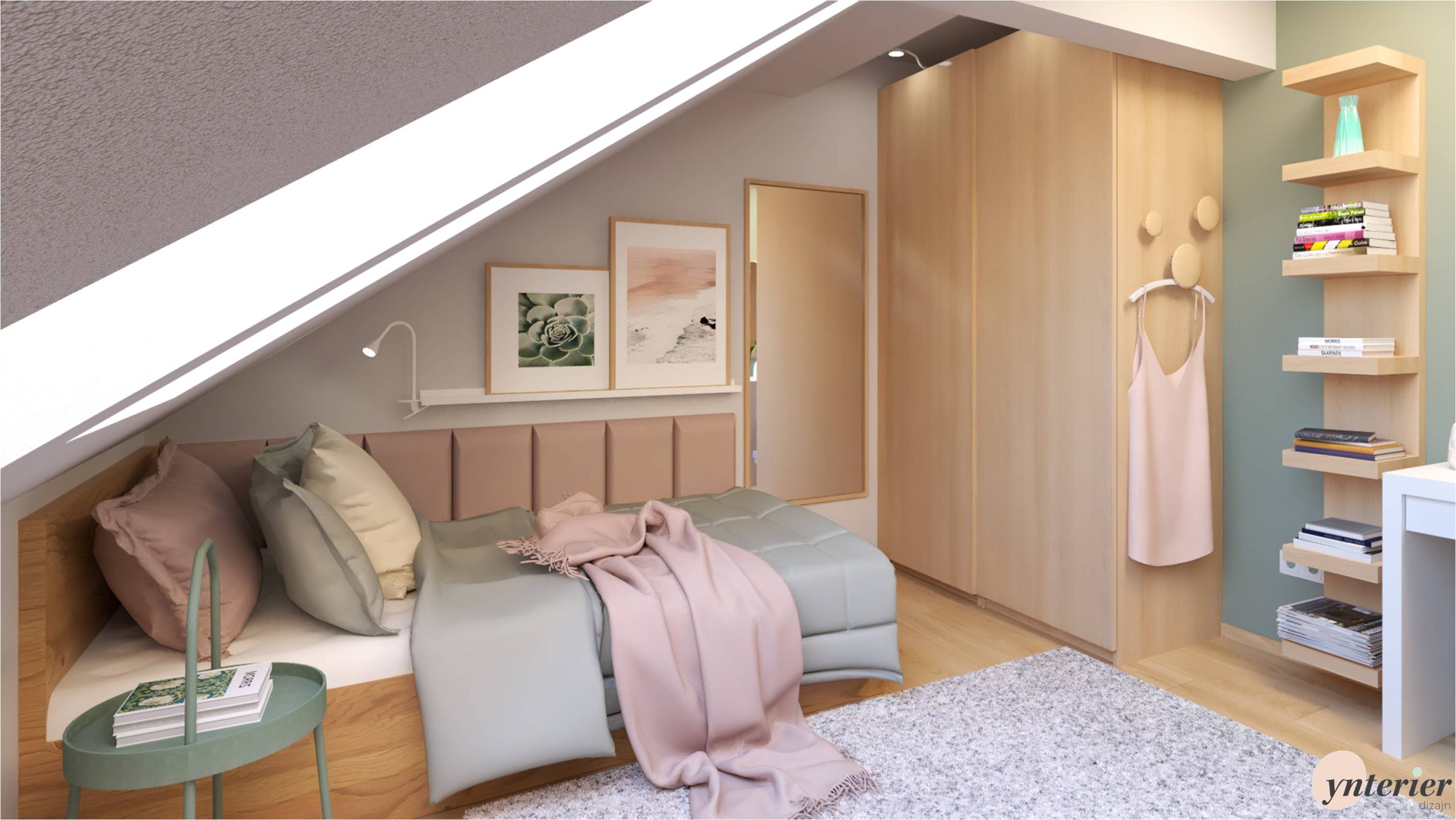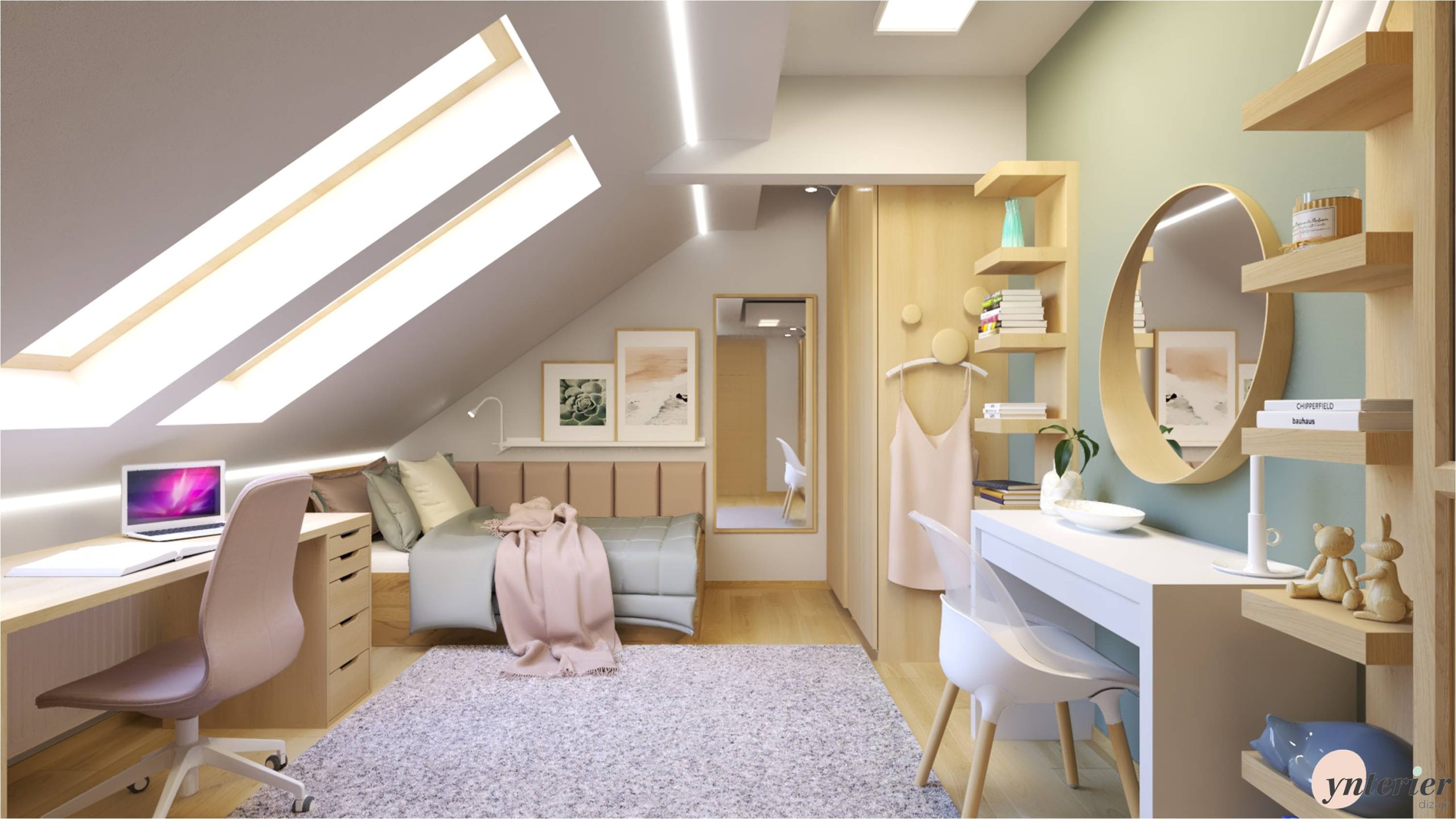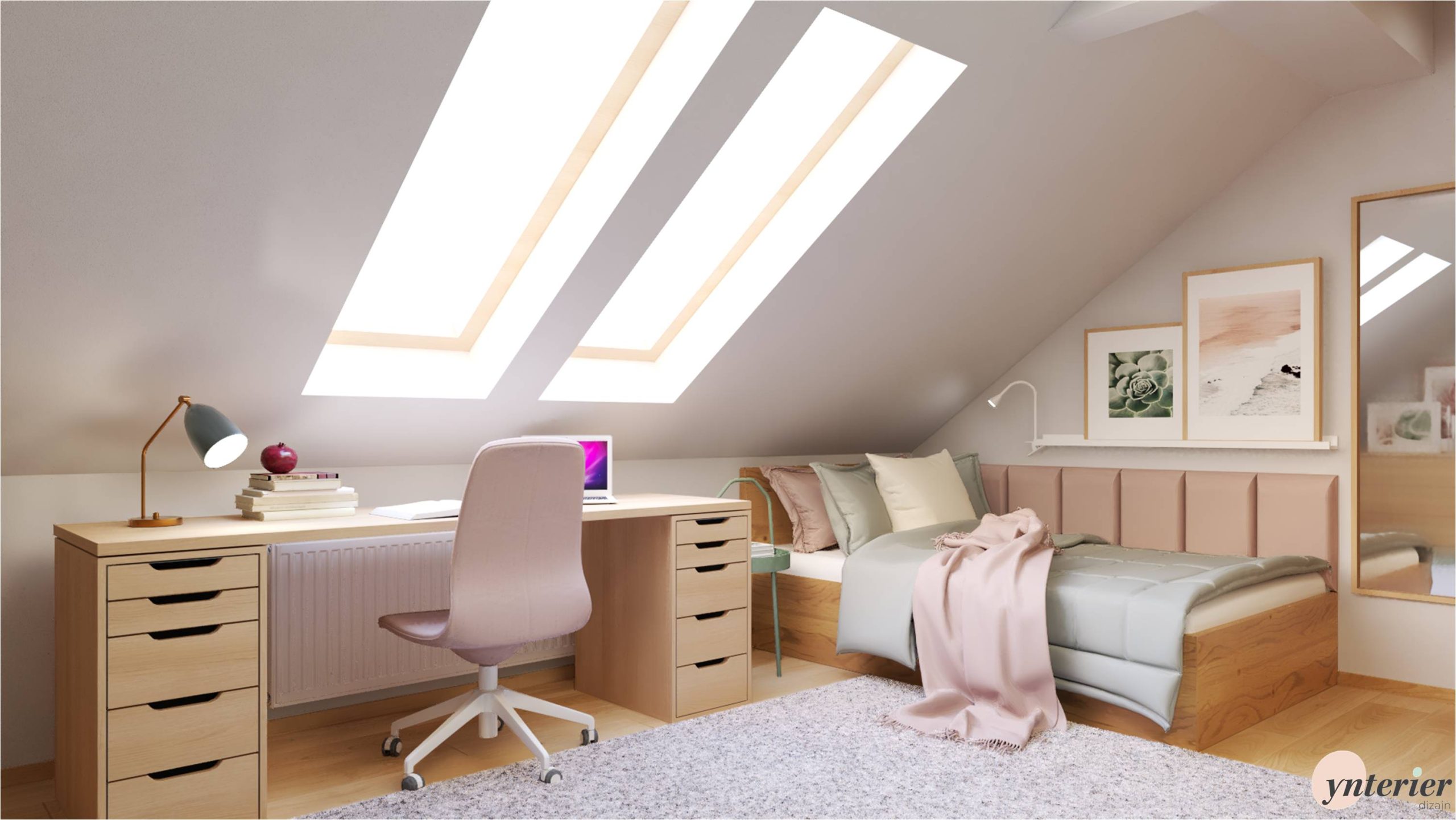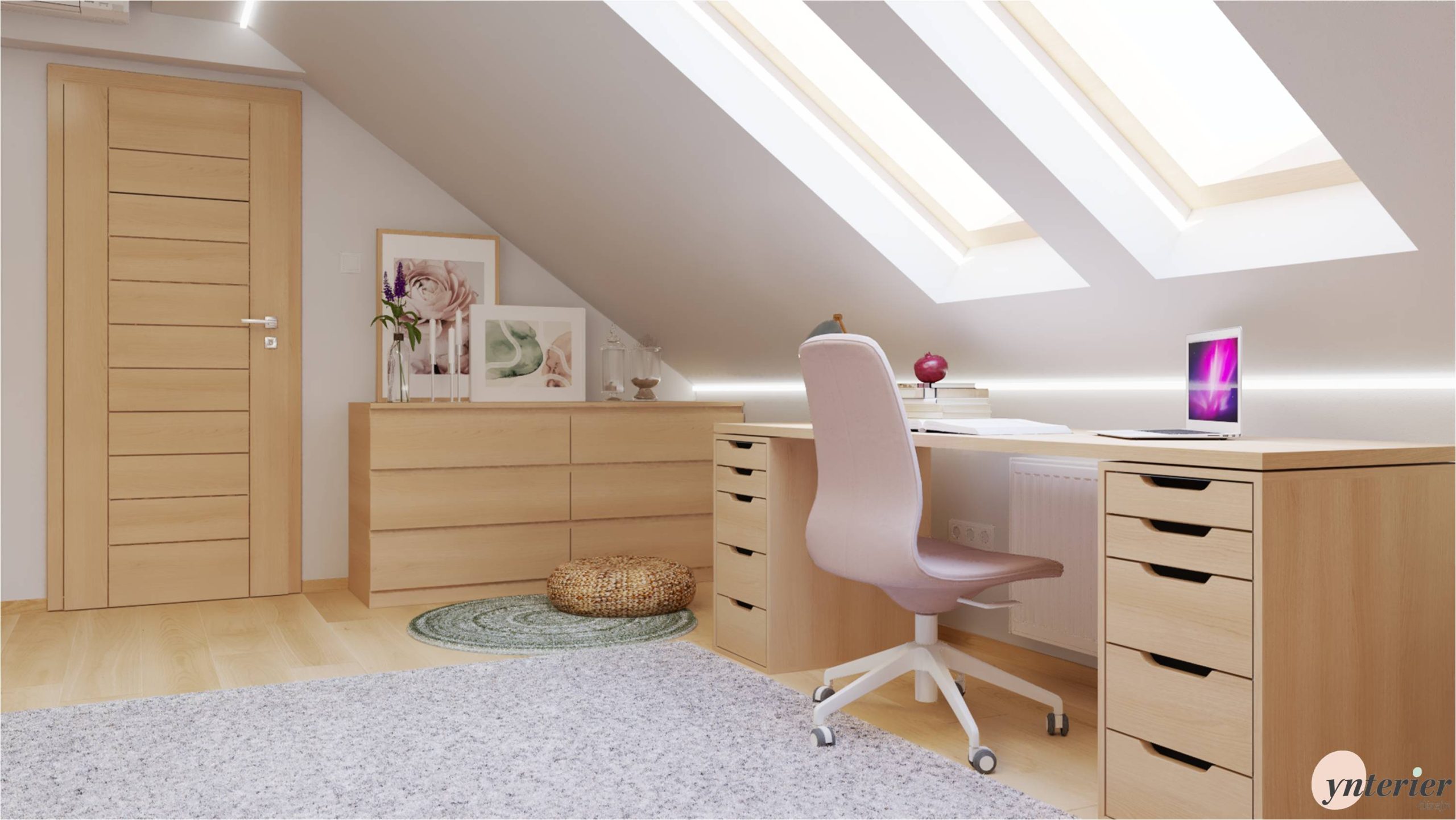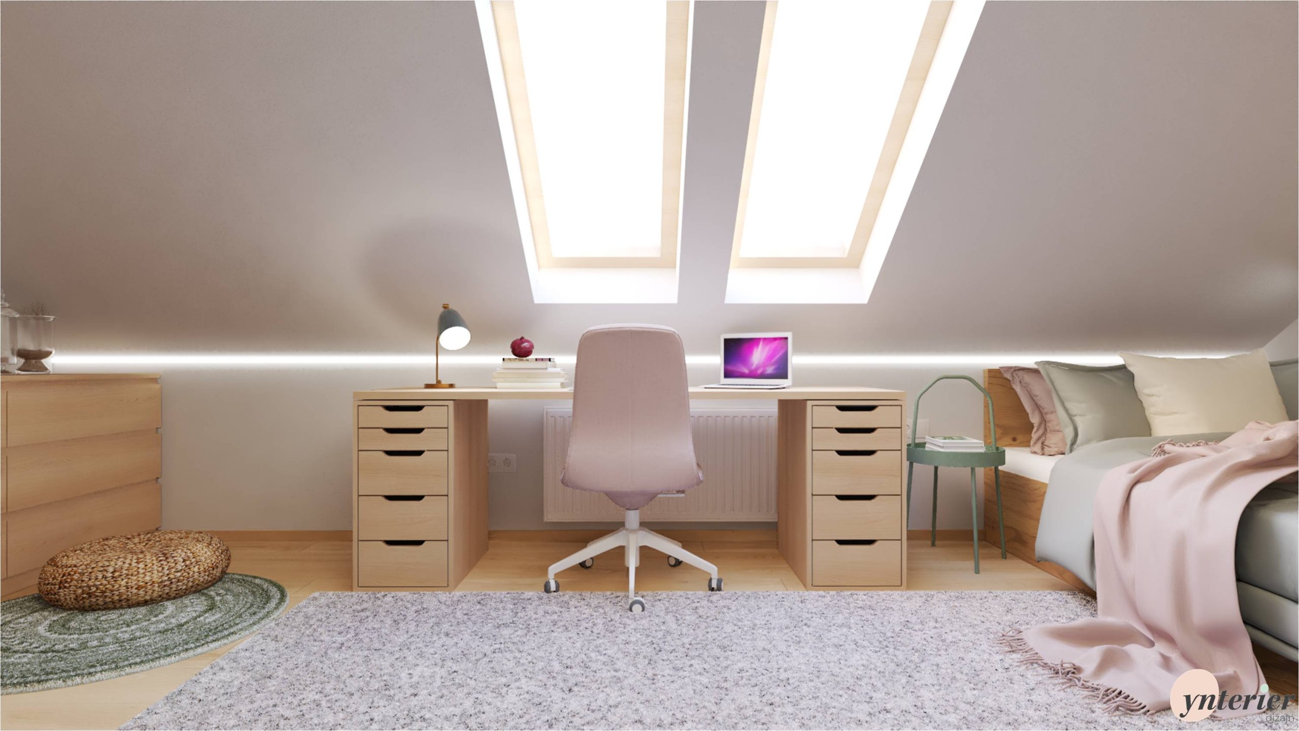 Zariadiť izbu so skosenými stenami je vždy ťažší oriešok🌰, no tentokrát to bolo ešte náročnejšie💪 bez použitia nábytku ❌na mieru❌. Snažili sme sa vybrať ľahko dostupný🫰💰 nábytok prevažne z IKEA😉. Návrh sa podaril🤩 a do izby sa zmestilo všetko potrebné: