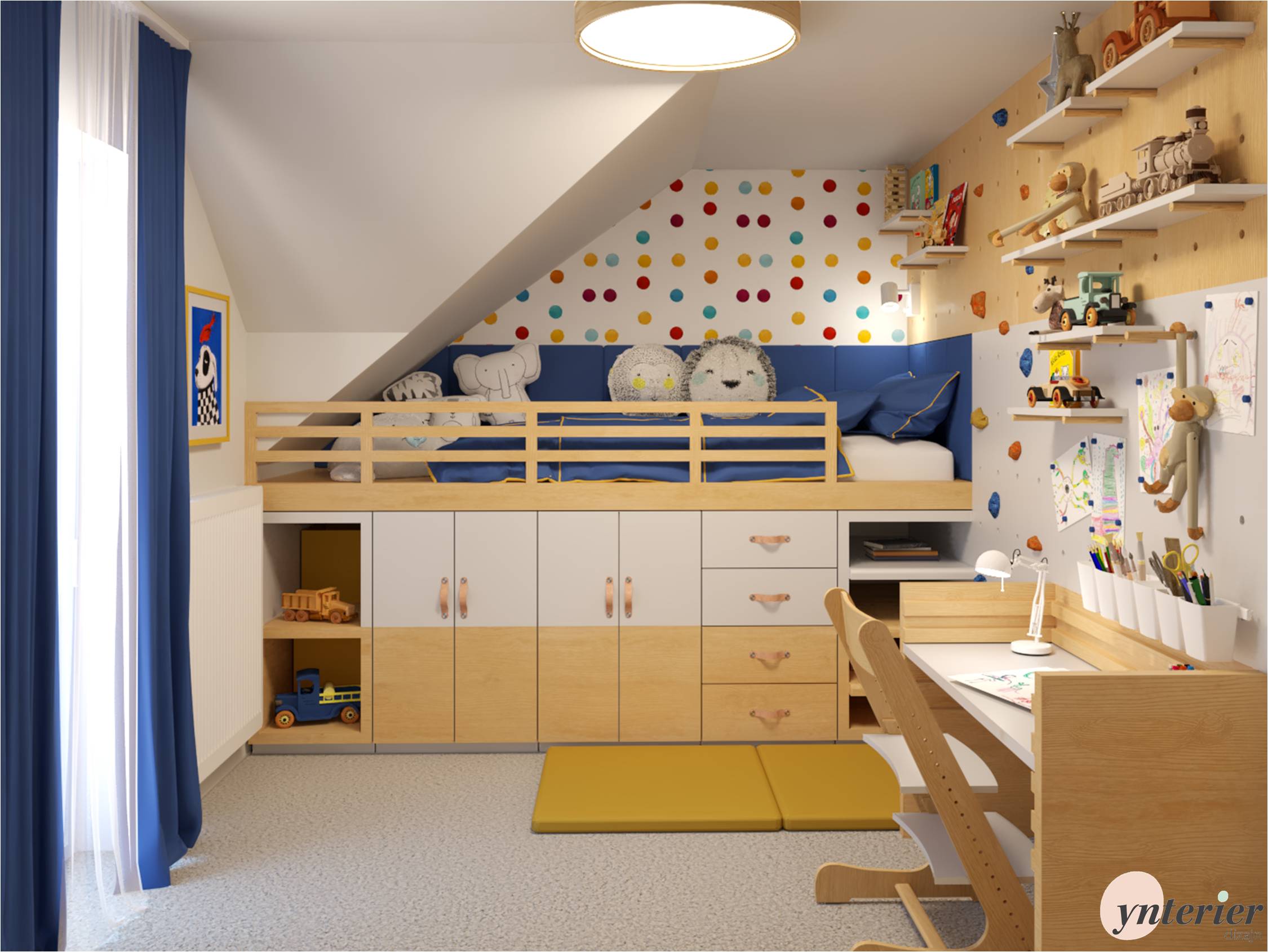 V Ynterier veríme, že každý priestor má potenciál stať sa funkčným, krásnym a inšpiratívnym. Táto detská izba je dôkazom, že aj menší podkrovný priestor môže poskytnúť všetko potrebné na to, aby sa stal útočiskom pre detské sny, hry a tvorenie.