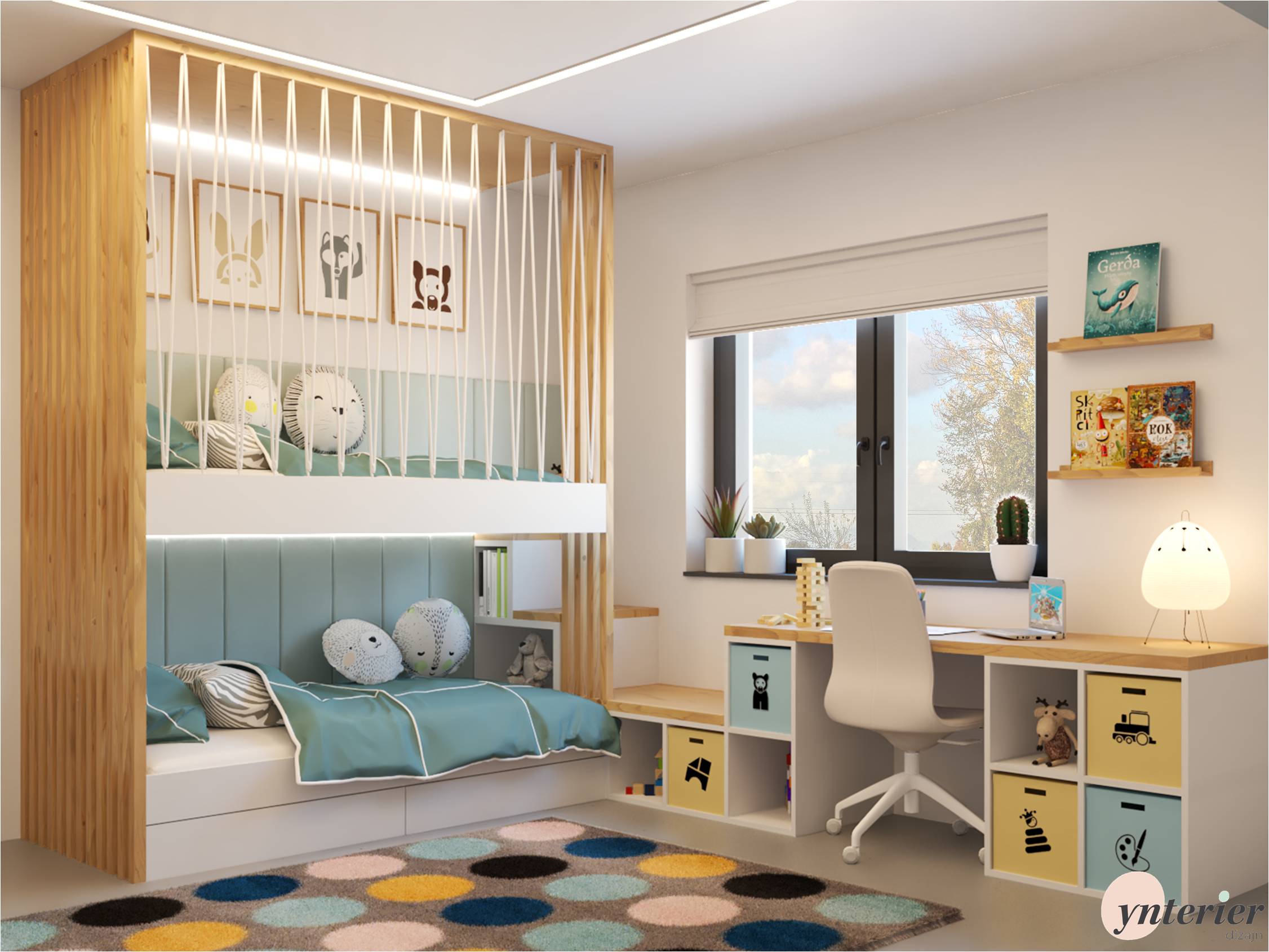 Ak zariaďujete izbu pre dvoch súrodencov, každodennou výzvou je optimalizácia priestoru. Naša firma Ynterier sa zameriava na vytvorenie dizajnu, ktorý maximálne využíva každý centimeter. Napríklad naša posledná vizualizácia zahŕňa poschodovú posteľ s integrovaným úložným priestorom a pracovný kútik pre oboch súrodencov.