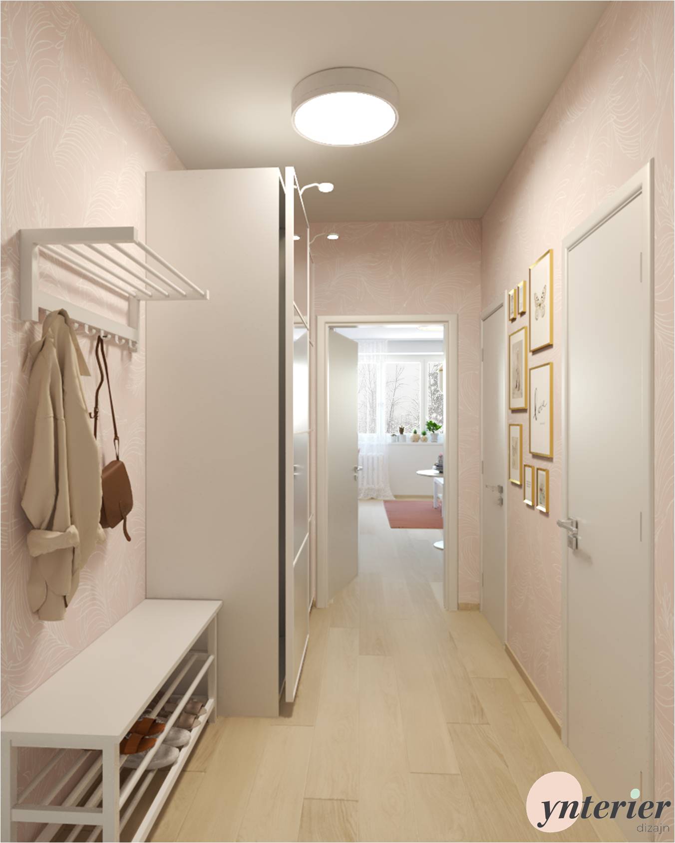 Táto mini predsieň vás uvíta v krásnom interiéri vynovenej garsónky. ( Jej návrh si môžete pozrieť tu 👉 Garsónka s IKEA nábytkom 👈 )