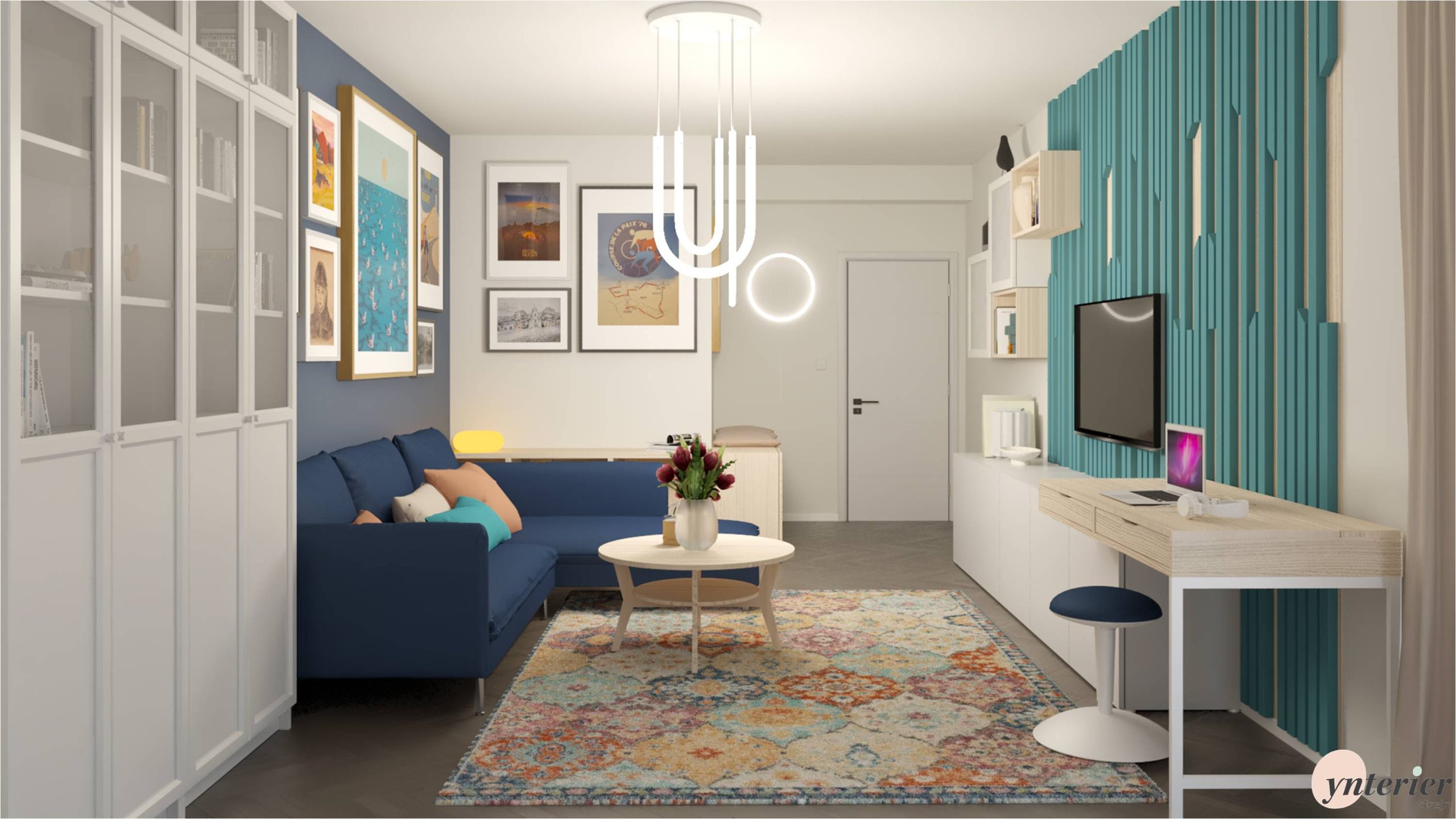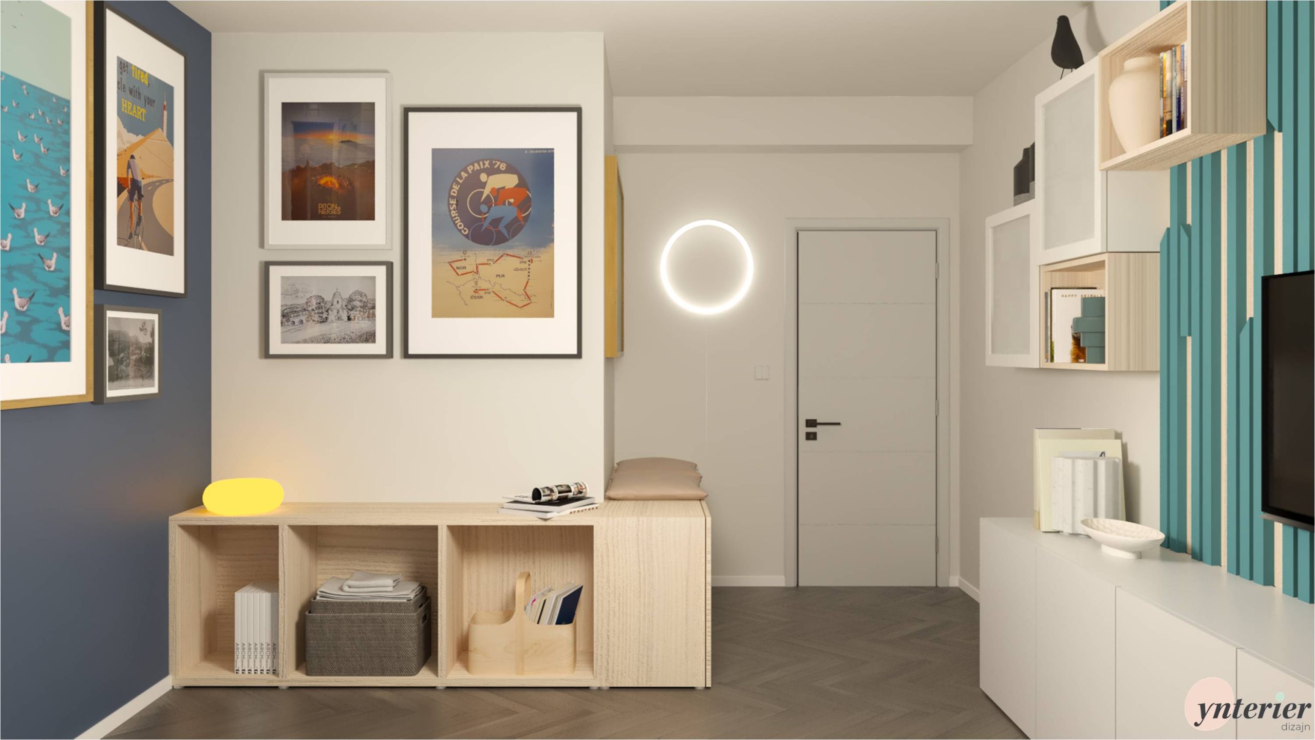 Náš návrh sa zameriava na kombináciu teplých neutrálnych tónov s akcentami v modrej a tyrkysovej farbe. Táto farebná schéma vytvára harmonický a príjemný priestor, ktorý pôsobí sviežo a moderne. Použitie prírodných materiálov, ako je drevo, dodáva interiéru útulnosť.