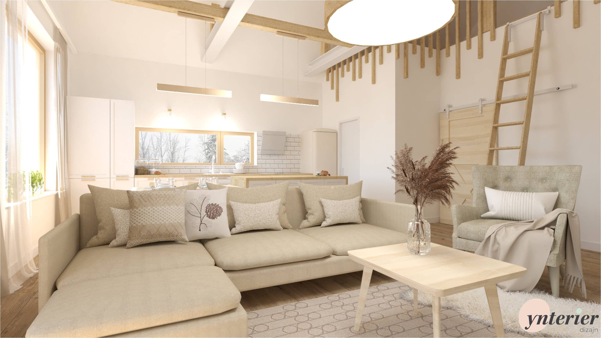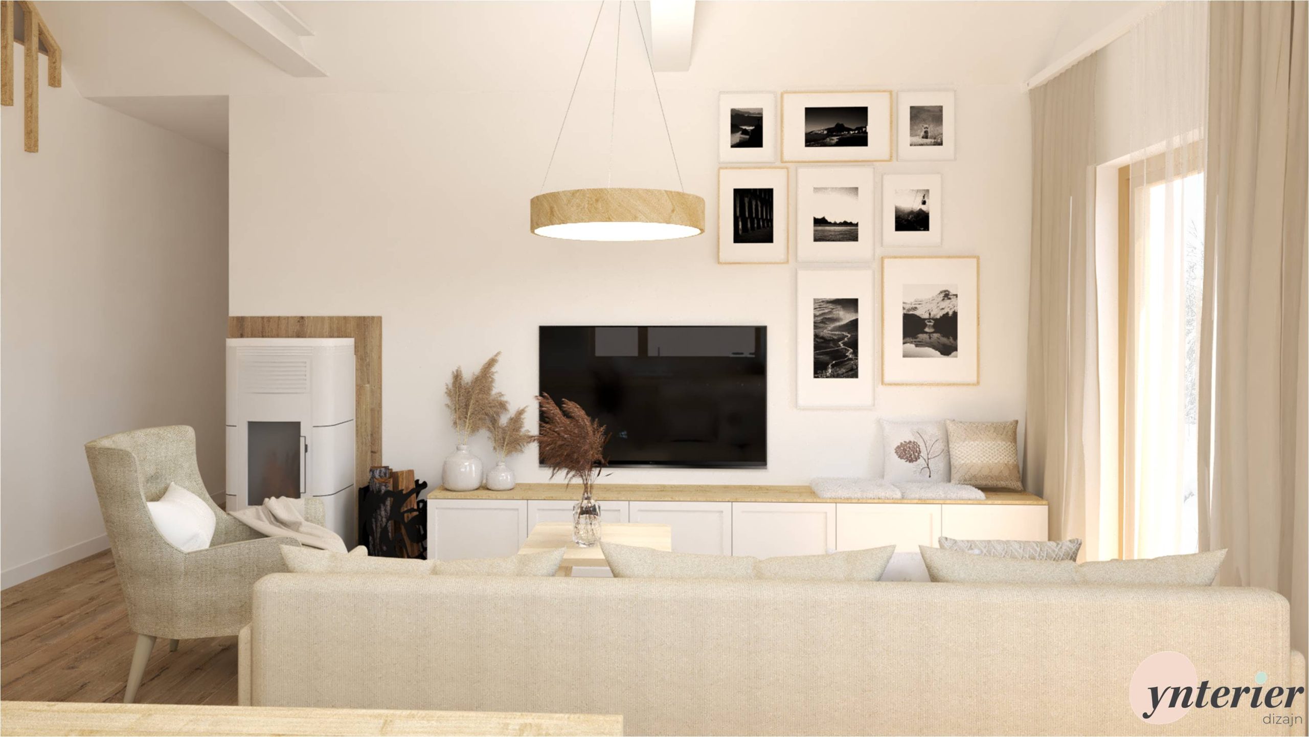 je pohodlná pre všetkých členov rodiny. Nachádza sa tu tradičné piecka na drevo, pri ktorej si môžete posedieť v pohodlnom kresle s knižkou v ruke. Gauč je v neutrálnej béžovej farbe a je dobrým miestom na sledovanie televízie. Ďalšie miesto na sedenie sa ponúka aj na TV nábytku.