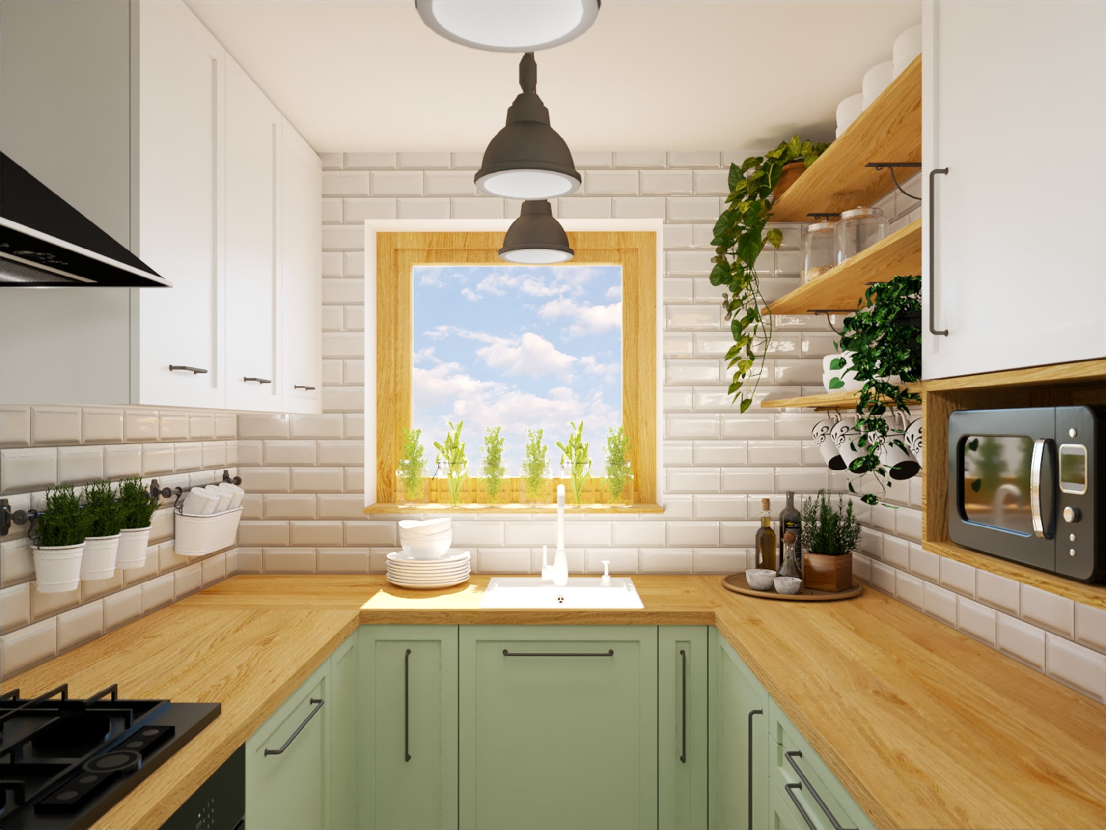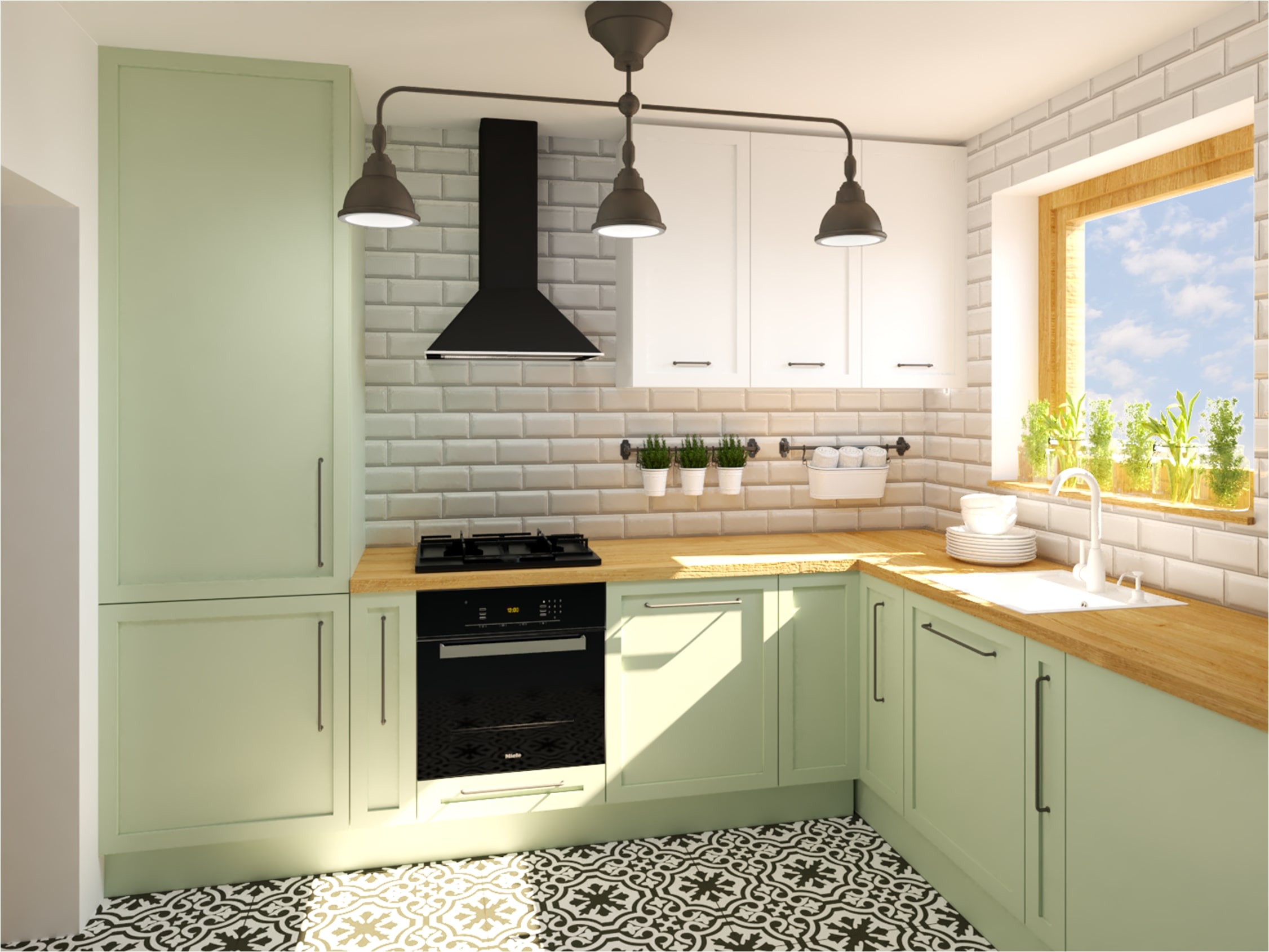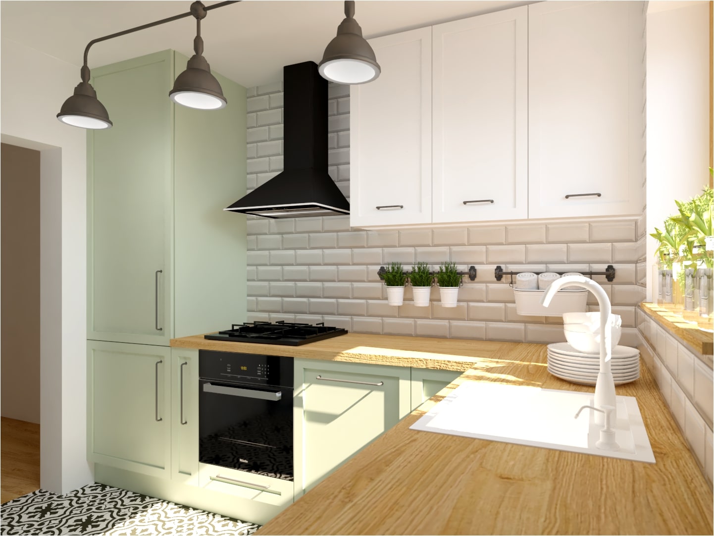 Rešpektovali sme všetky želania majiteľky ako napr. otvorené police, mikrovlnka v nižšej polohe, alebo voľne stojaca americká chladnička ![]()