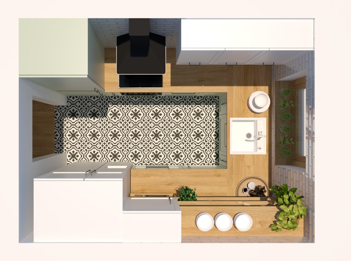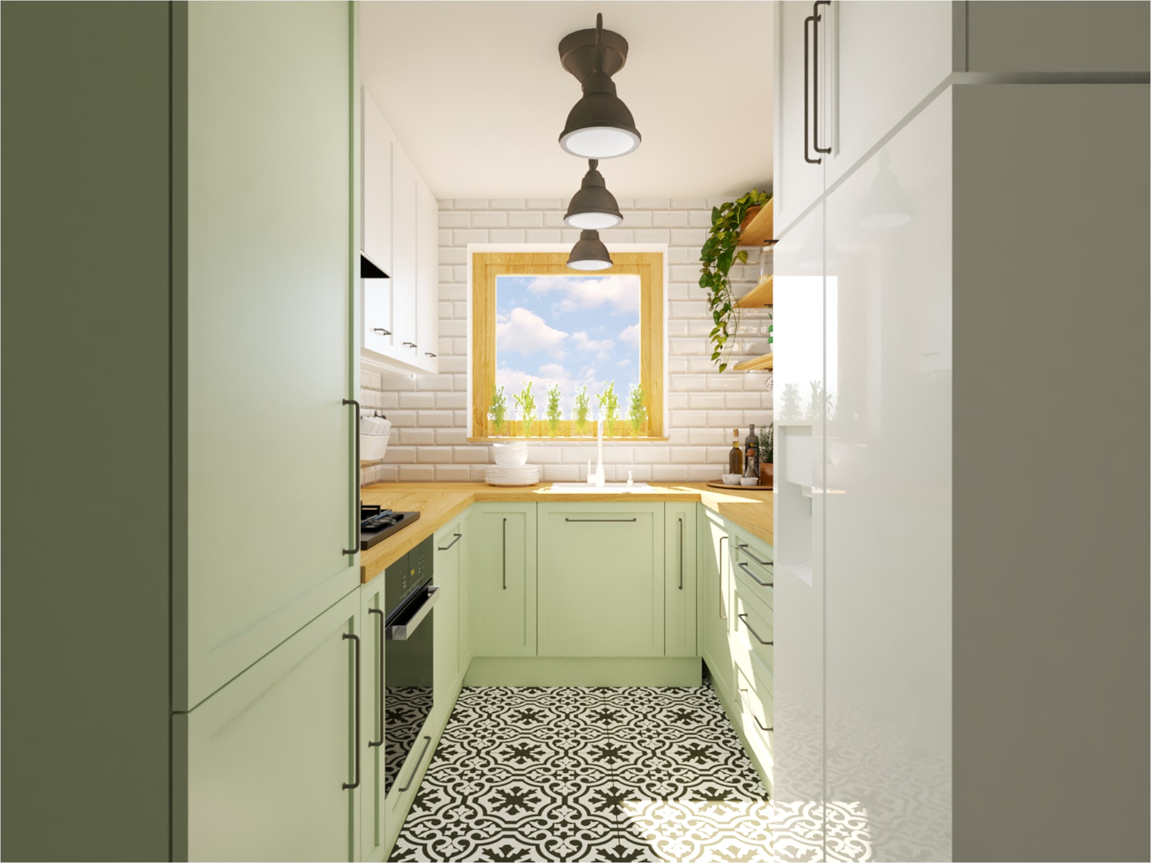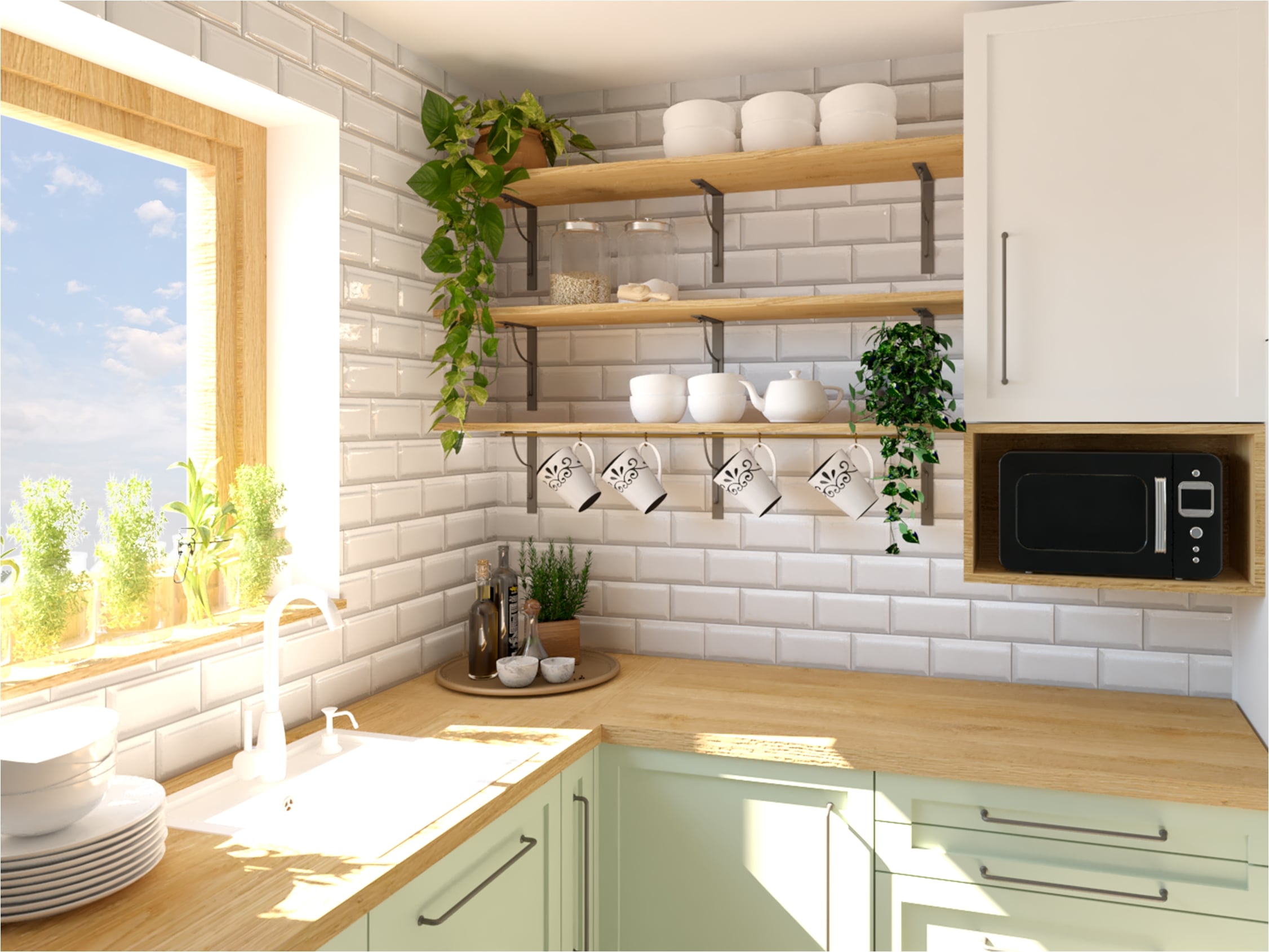 Rešpektovali sme všetky želania majiteľky ako napr. otvorené police, mikrovlnka v nižšej polohe, alebo voľne stojaca americká chladnička ![]()