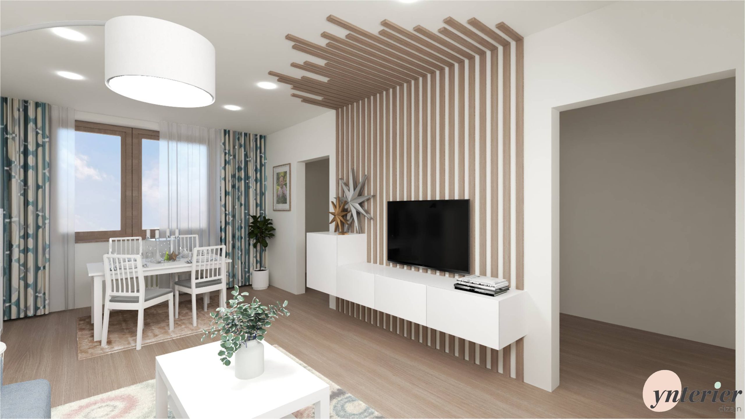 Máte aj vy pocit, že vašej obývačke niečo chýba? To bol aj tento prípad. Pekný priestor zariadený základným nábytkom stačilo len dotiahnuť a zútulniť doplnkami. Potreboval ústredný bod, ktorý si každý zapamätá. Ním sa stal lamelový obklad, ktorý prechádza až na strop obývačky. Ďalej sme pridali farebné závesy, koberček, vankúše, obraz a drobné nábytky. Všetky prvky sa dajú kúpiť v Ikea, takže zariadite rýchlo a lacno.